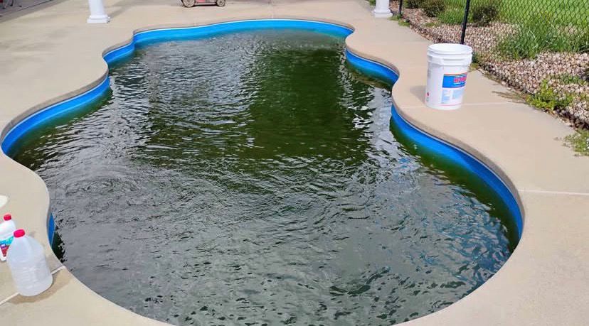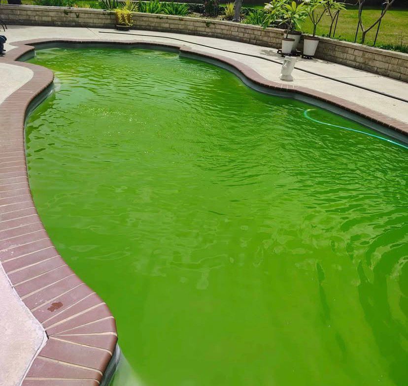 Seasonal maintenance and algae removal for a residential pool, restoring crystal clear water.